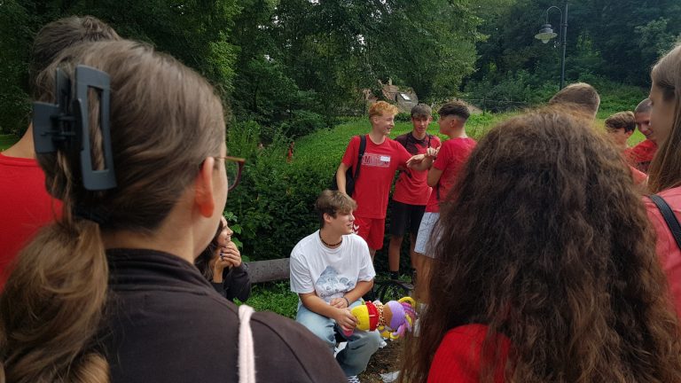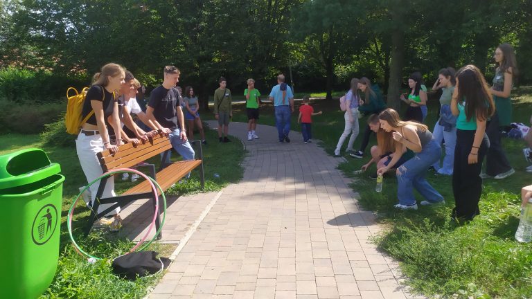 Ezután a Szent István Parkban osztályszinten csapatokban, különböző tárgyakat kerestek, illetve szereztek be a diákok, majd közösen virágcsokrot kötöttek.