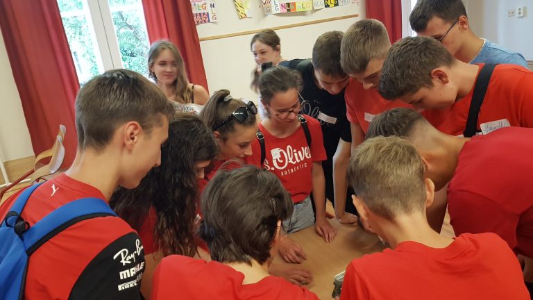 Az osztályoknak egységesen más-más színű pólót kellett felvenniük erre a délutánra. Az A és a B osztály az Emlékműnél kezdte a vetélkedőt. A másik két osztály az iskolában kapott feladatot. Volt hullahopp karikás feladat, bottle flip, pingpong labda dobálás pohárba, majd utolsóként piff-puff játék egymás nevével.
