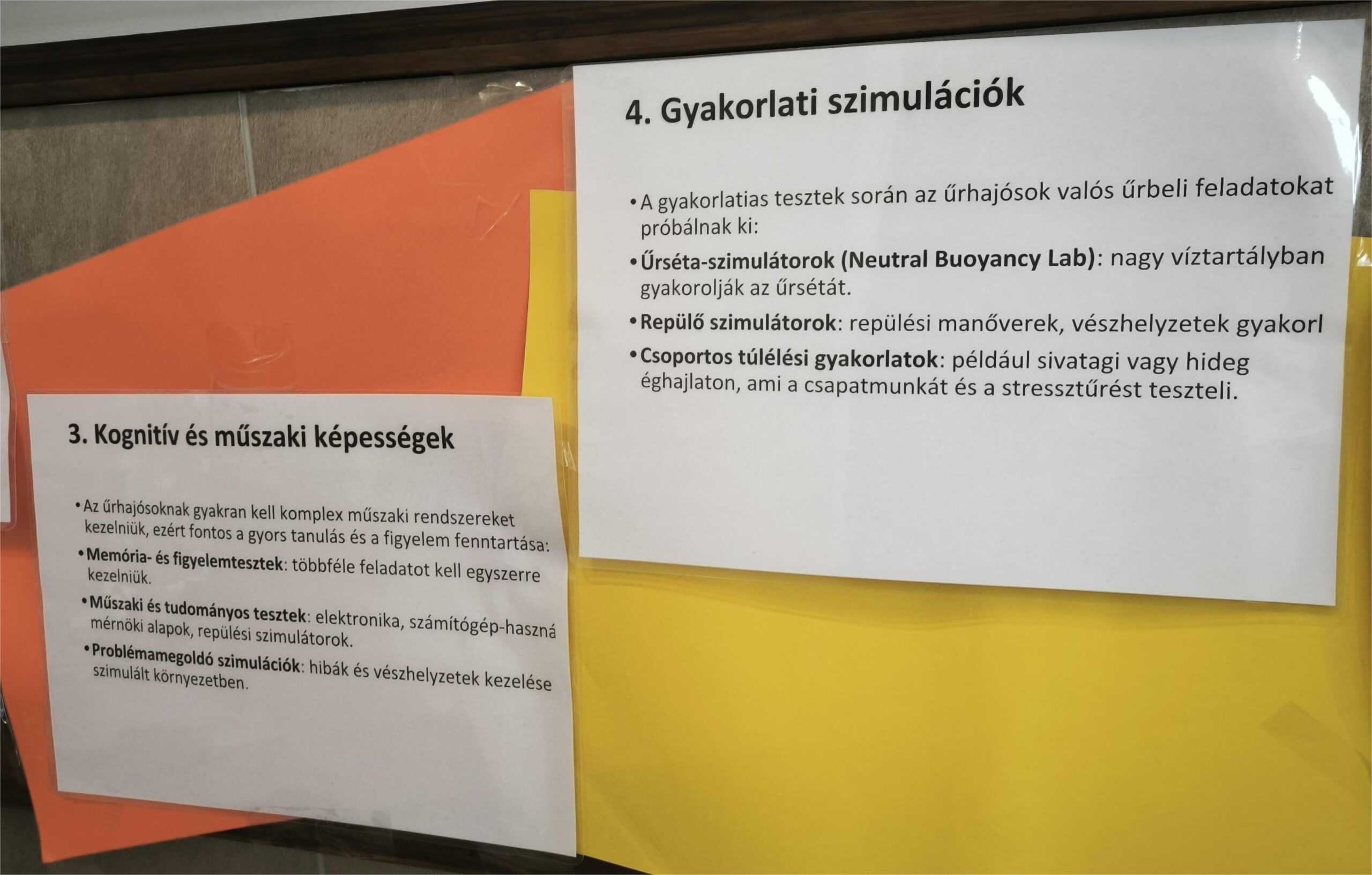A kiállítás a biológia és a kémia tantárgyak szemszögéből mutatja be az űrkutatást.