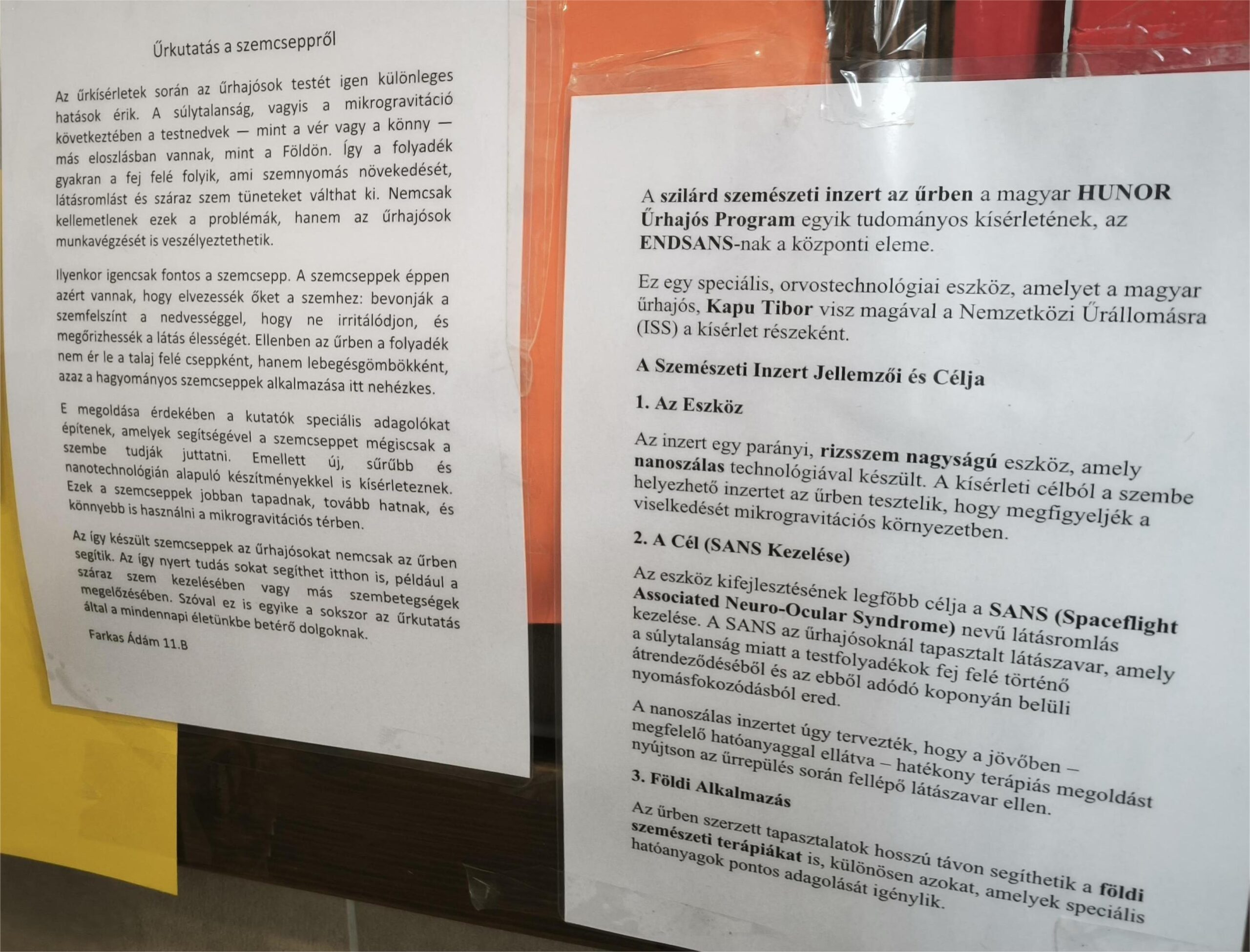 Az Űrkutatás hete alkalmából gimnázium 2. emeleti folyosóján a 11.B osztályos diákok a „Magyarok a világűrben” kiállítás kicsinyített változatát hozták lére. Néhány összefoglaló a kiállításból itt olvasható!