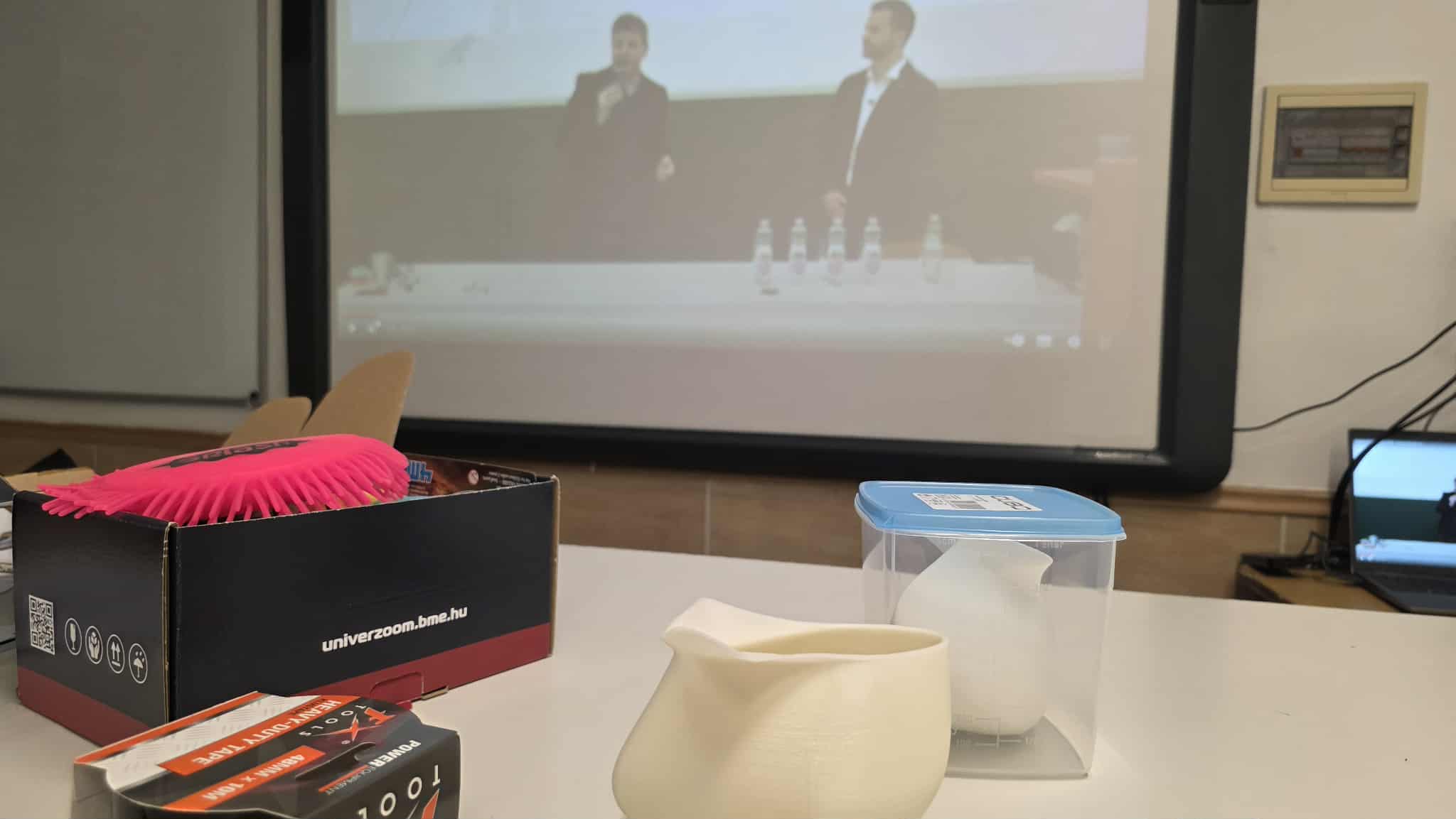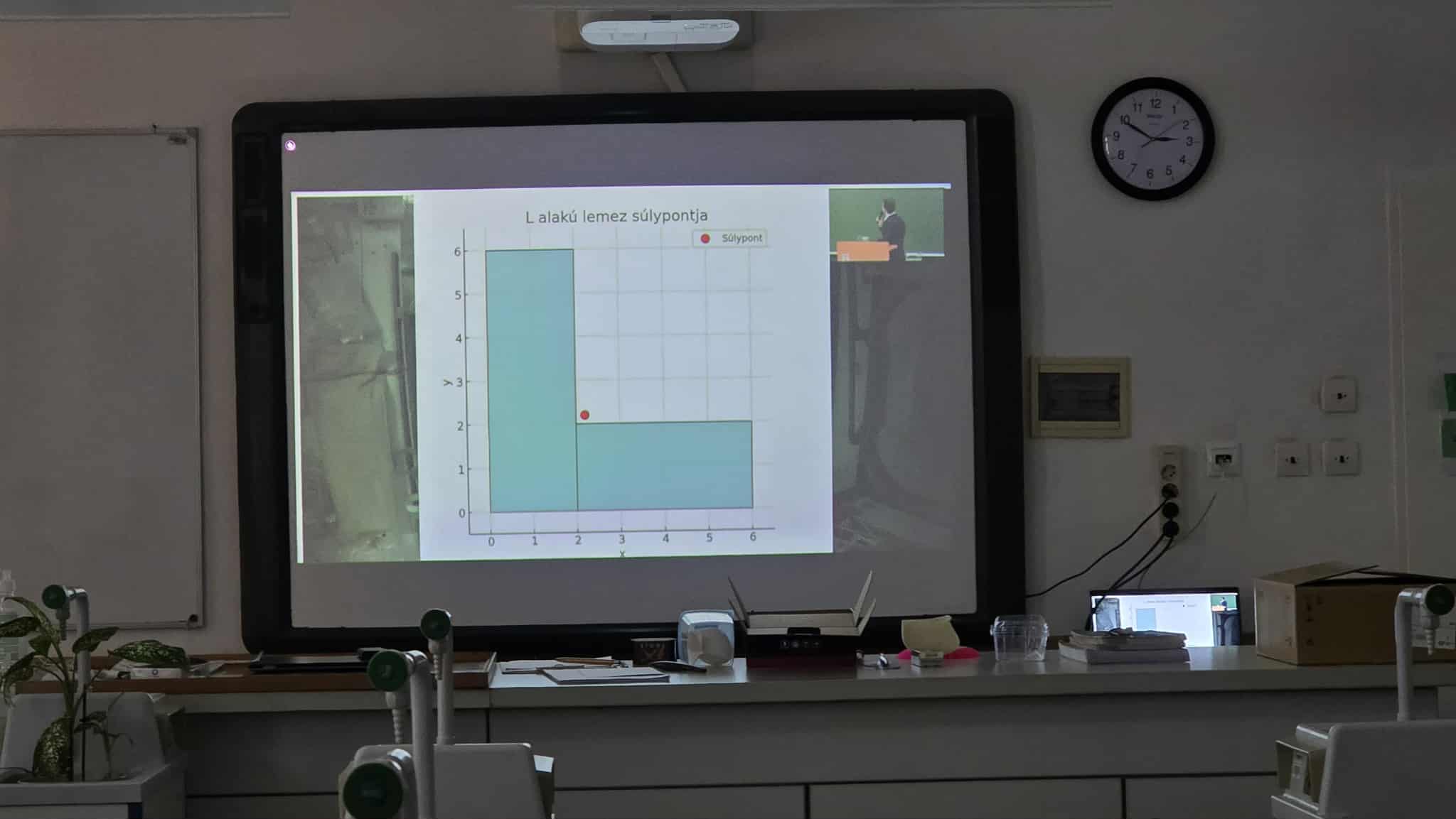 A projektet záró foglalkozáson a diákok egy ppt – t nézhettek meg. Alapjául a BME kísérletezős videója szolgált, kiegészítő – magyarázó képekkel (pl. M.C Escher síkot hézagmentesen lefedő formái; gravitációs gyorsulás értékének kiszámolása); s a Huniverzum kiállításon készített fotókkal, videókkal.