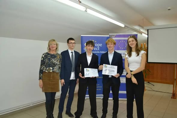 2025. november 20-án a Csapatnév nevű csapatunk másodszorra, iskolánk ötödször nyerte meg a 4 for Europe regionális döntőjét. A versenyre a Berzsenyi Dániel Könyvtárban került sor, ahol a csapatok tudásukat, lexikális felkészültségüket és kreativitásukat mérhették össze.