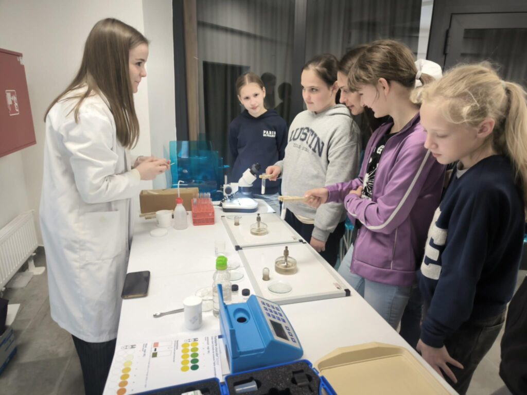 A Nagy Lajos Gimnázium 11.B osztályos tanulói a Víz Világnapja alkalmából a vízhez kapcsolódó kémiai kísérleteket, biológiai vizsgálatokat koordináltak, valamint mutattak be a Víztoronyba érkező érdeklődő diákoknak.