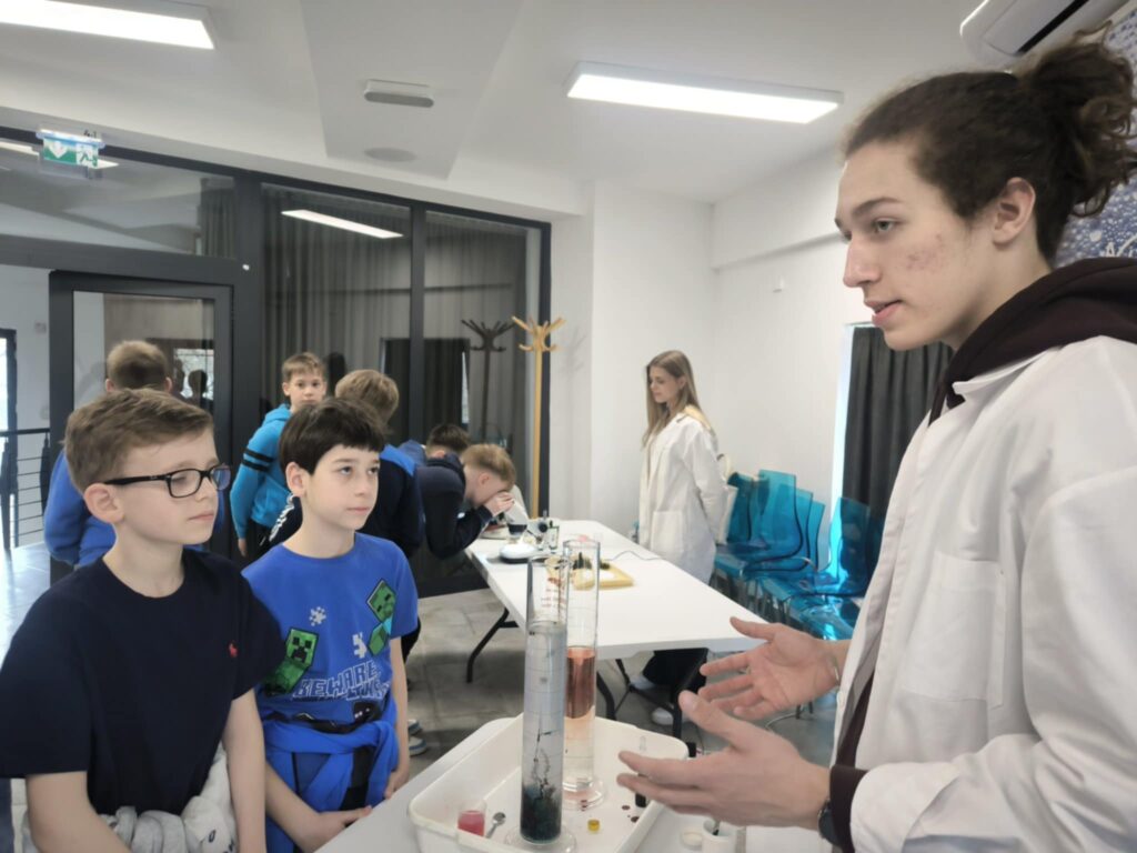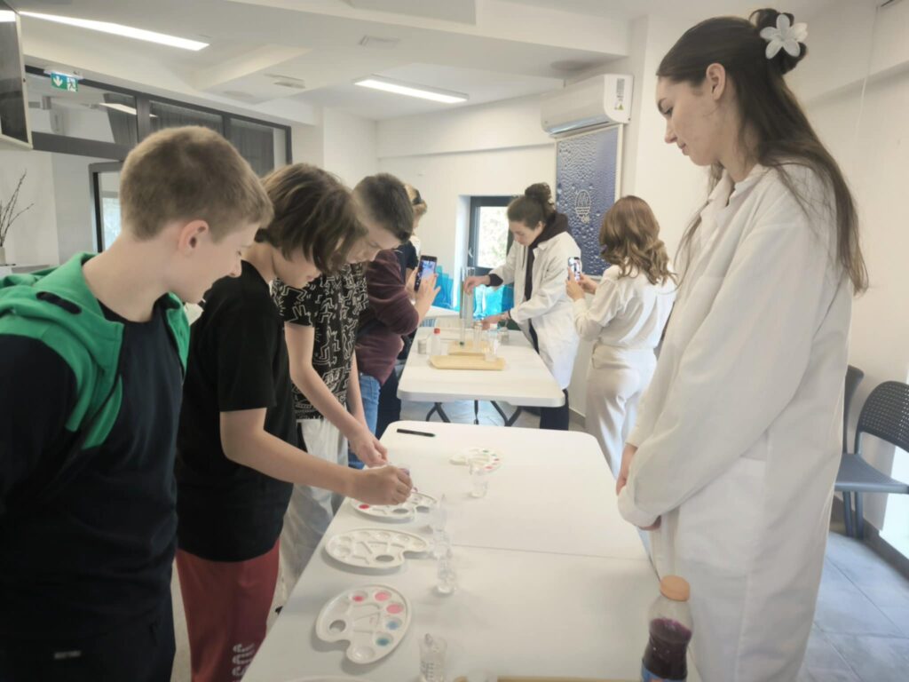 Különböző méretű mérőhengerekben megnézhették a diffúzió valamint az ozmózis jelenségét, készítettek „kémikusok virágoskertjét” színes (vas, nikkel, réz, kobalt tartalmú) sókból vízüveg oldat segítségével.